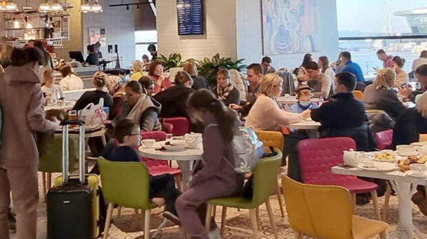 В кафе московского аэропорта Шереметьево в последние дни ажиотаж. В заведениях нет ни одного свободного места.