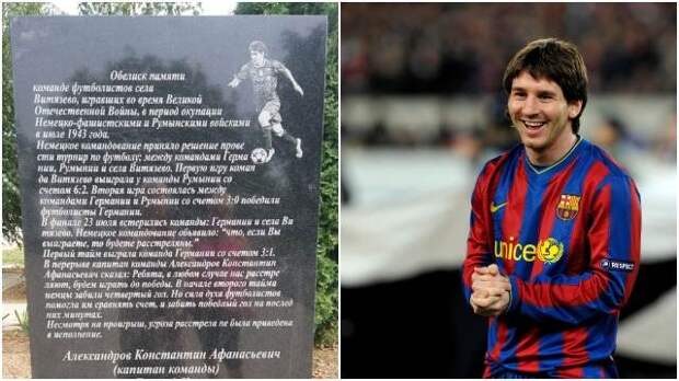 В память о событиях июля 1943 года местные жители установили памятник. Вот только художник решил выгравировать на монументе бывшего футболиста "Барселоны" Лионеля Месси.