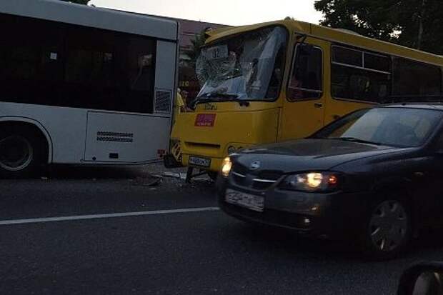 Опубликовано видео с места столкновения двух автобусов в Сочи.