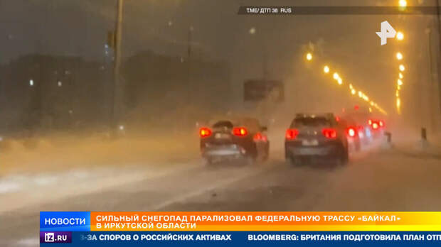 Сильный снегопад парализовал сегодня федеральную трассу "Байкал" от Иркутска до поселка Култук. На дороге гололед и снежные наносы.
