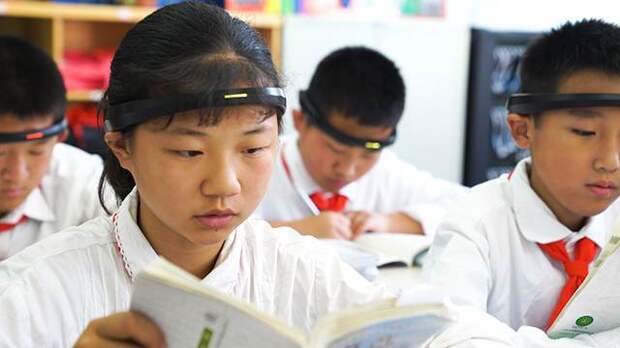 В Китае школьникам провинции Чжэцзян стали надевать на голову обручи, с помощью которых можно контролировать внимательность.