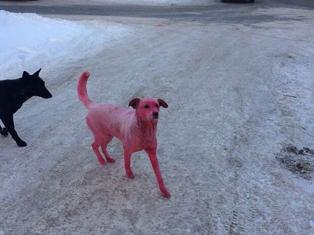 По улицам города Ижевска несколько дней бегает розовая собака. Об этом сообщают пользователи в социальной сети "ВКонтакте".