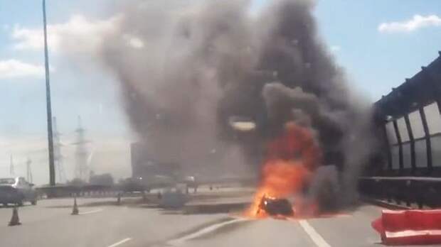 Мотоциклист попал в огненное ДТП на кольцевой автодороге в Петербурге. Судя по дате на видео, появившемся в Сети, авария произошла утром 10 июля.