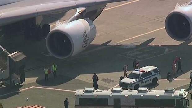 Пятьсот пассажиров рейса "Эмирейтс" были заблокированы в самолете и окружены кордоном полиции. Оказалось, что прямо в небе над Америкой около 100 человек резко почувствовали себя плохо — подскочила температура и открылся сильный кашель.