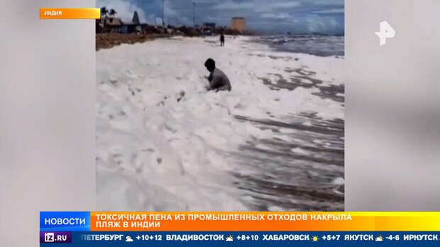 Странная ядовитая пена с едким запахом заволокла все побережье на юге Индии. Так сейчас выглядит пляж в городе Чиннаи.