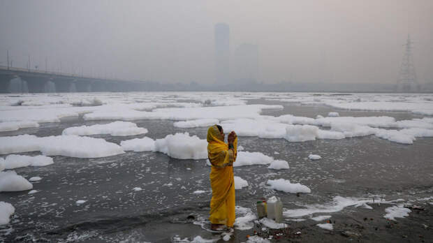 Пышный слой на реке – это целая смесь из токсичных отходов. Он образовался в результате загрязнения сточными водами и выбросов промышленных отходов.