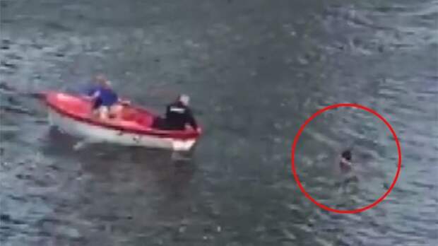 На кадрах видно, как сотрудник полиции и вахтовой рабочий на лодке подплыли к потерпевшей и вытащили ее из воды.