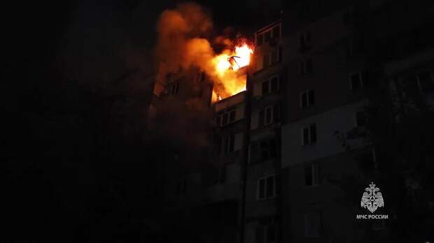 После атаки БПЛА произошел пожар в двух квартирах на четвертом и восьмом этажах многоэтажки, а также на балконах на восьмом и девятом этажах. Сотрудники МЧС эвакуировали семь человек с места инцидента, в том числе 16-летнего подростка.