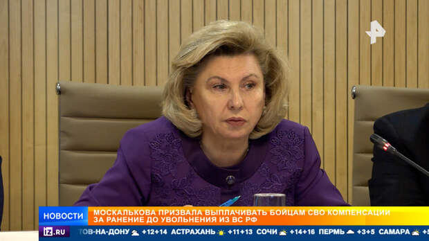 В ходе встречи уполномоченный по правам человека в России Татьяна Москалькова обратилась с просьбой предусмотреть возможность проводить все положенные выплаты за ранения бойцам СВО до их увольнения.