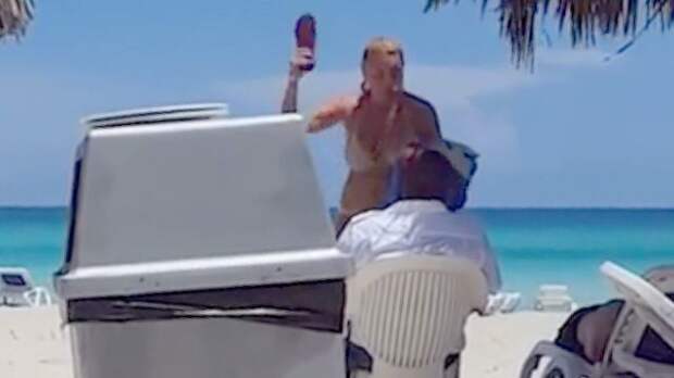Девушка, обладающая внушительным формами, атаковала человека, следящего за порядком на пляжном курорте. Вооруженная тапочкой дама также сказала мужчине несколько более чем грубых слов, прежде чем ушла с места конфликта.