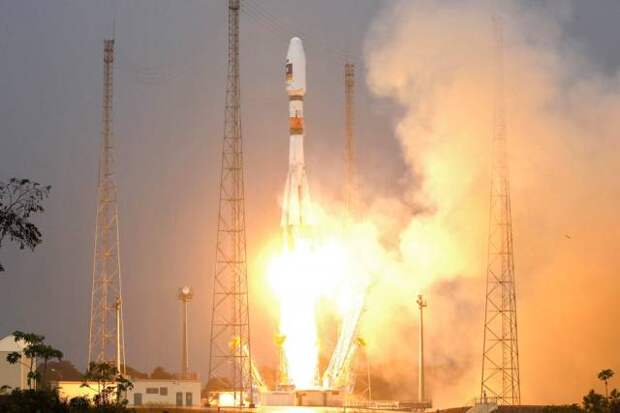 В штатном режиме, согласно первым данным, проходит полет российской ракеты-носителя "Союз-СТ-Б". она успешно стартовала сегодня с космодрома в Куру во Французской Гвиане. Об этом сообщает ТАСС. Прямую трансляцию запуска на своем сайте осуществляет компания "Arianespace", занимающаяся коммерческими запусками российской ракеты с данного космодрома.