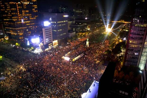 Сотни тысяч человек собрались на митинг против президента страны в Южной Корее. Стычки с полицией на протестной акции перемежались с песнями и танцами.
