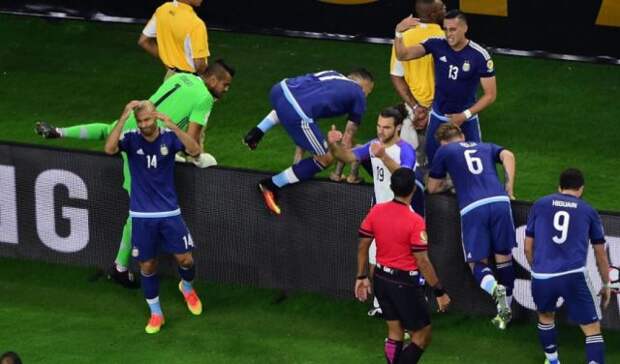 Во время матча сборных Аргентины и США страшную травму получил футболист Эсекьель Лавесси. В одном из эпизодов он неудачно приземлился после столкновения с рекламным щитом и сломал локоть.