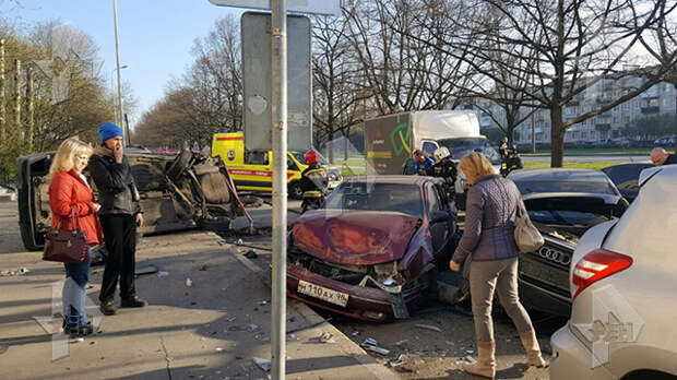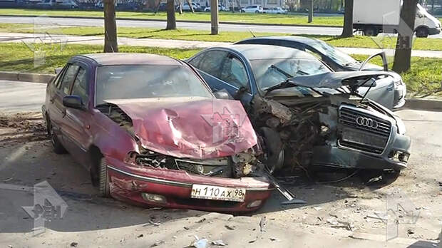 Серьезное ДТП произошло в Московском районе Санкт-Петербурга. У дома 21 на улице Космонавтов, как утверждают очевидцы, водитель "Ауди" протаранил около 10 автомобилей.