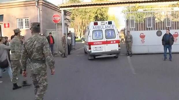 В Ереван на каретах скорой помощи и реанимации привозят пострадавших от обстрелов в Нагорном Карабахе.