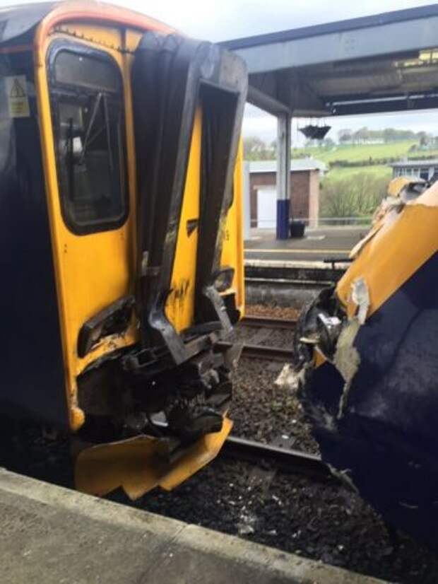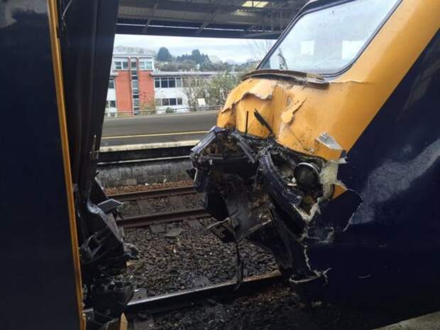По меньшей мере 18 человек получили ранения в результате столкновения двух поездов на железнодорожной станции в британском Плимуте. Фотографии инцидента очевидцы выложили в Сеть.