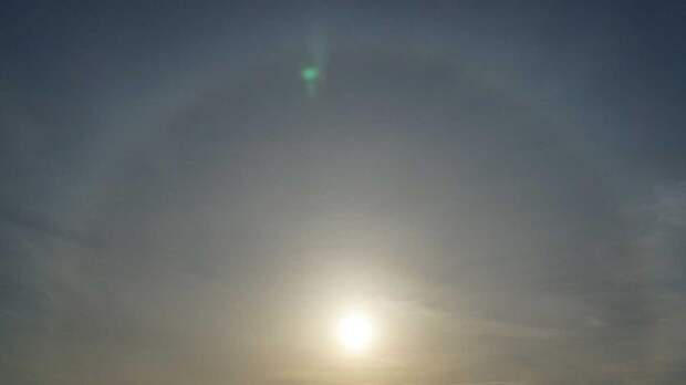 Редкое оптическое явление вокруг солнца, называемое эффект гало, появилась в небе над Московской областью днем 2 января. Об этом сообщает РИА Новости.