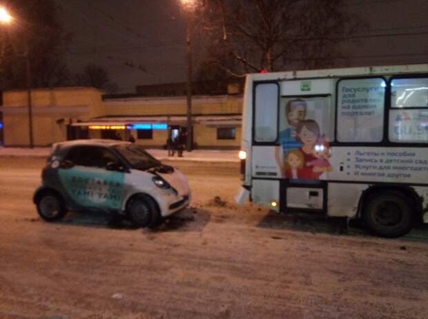 Микролитражка врезалась в маршрутное такси на Новочеркасском проспекте.