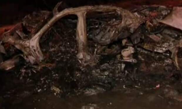 Авто загорелось после того, как на огромной скорости влетело в осветительный столб. По предварительной версии, водитель не справился с управлением.