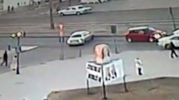 "На камеры видеонаблюдения попали дальнейшие маневры водителя. Следуя по бульвару Карла Маркса, при повороте на улицу Терешковой водитель белой иномарки попытался повернуть налево и наехал на бордюр", – говорится в сообщении ведомства.