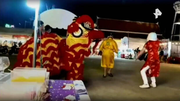 На видео, которое опубликовала полиция, видно, как танцоры в ярких костюмах приближаются к подозреваемому, а затем один из них внезапно снимает голову льва, и вместе с коллегами задерживает мужчину.