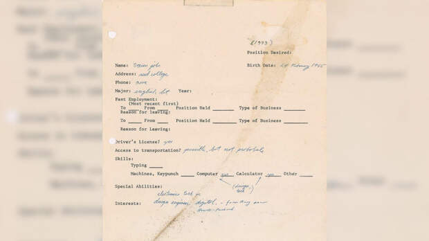 Стив Джобс заполнил анкету на одном листе от руки в 1973 году. Предполагается, что он сделал это после того, как бросил обучение в Рид-колледже в Портленде в штате Орегон.