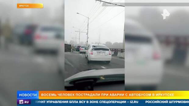 Восемь человек пострадали в ДТП с участием пассажирского автобуса на трассе в Иркутске, он столкнулся с двумя легковушками. Момент происшествия попал на видеорегистратор одной из машин.