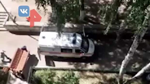 На кадрах, снятых из окна жилого дома, видно припарковавшуюся у подъезда скорую, однако вместо больных в нее начали заносить мебель.