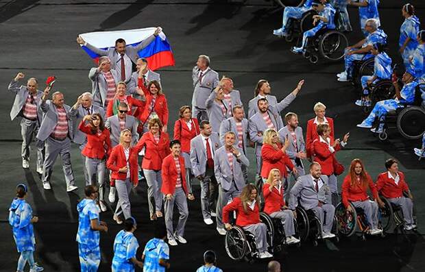 Представитель сборной команды Белоруссии вынес российский триколор на парад спортсменов во время церемонии открытия летних Паралимпийских игр на стадионе Маркана в Рио, несмотря на запрет со стороны Международного паралимпийского комитета.