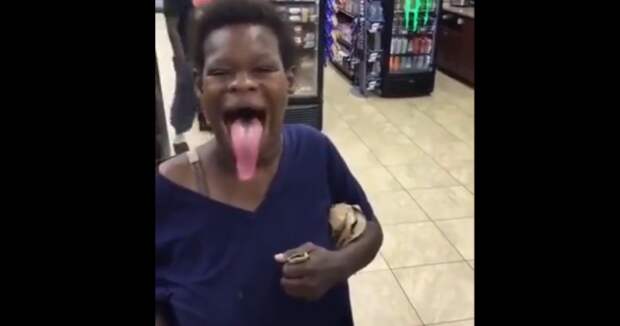 На видео темнокожая покупательница демонстрирует автору ролика возможности своего языка.