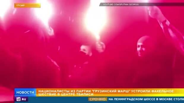 Центр Тбилиси в эти минуты заволокло дымом, на улицах радикальные националисты из партии "Грузинский марш" устроили факельное шествие и остановились напротив офиса правящей партии "Грузинская мечта".