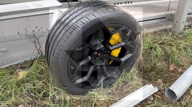 Как передает корреспондент, при столкновении от машины отлетело колесо. Оно рухнуло с эстакады на шоссе. Также на земле валяются части отбойника, который протаранила иномарка.