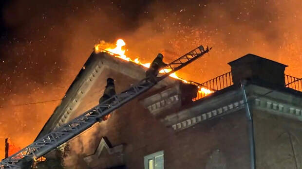 Пламя полностью объяло крышу жилого трехэтажного дома в Луганске, сообщили в МЧС. По данным ведомства, огонь распространился на площади в тысячу квадратных метров.