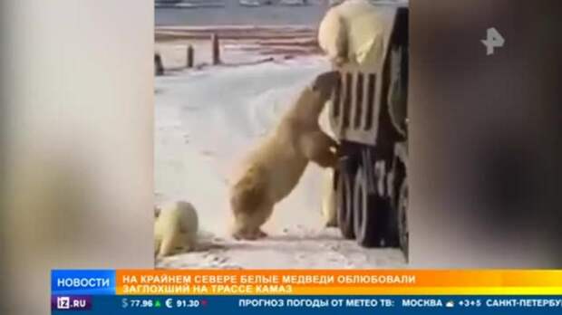 Сегодня в Сети набирает популярность видео, сделанное на Крайнем Севере России. В одном из районов семейство белых медведей установило настоящий блокпост, на котором досматривает проезжающие мимо машины.