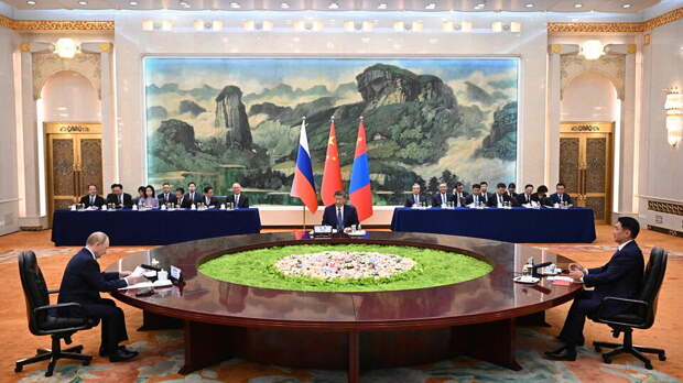 Подробности – сюжете корреспондента РЕН ТВ Николая Иванова."Дом народных собраний в Пекине – именно здесь проходят съезды Коммунистической партии Китая. А сегодня это площадка для трехсторонней встречи лидеров России, КНР и Монголии", – отметил он.