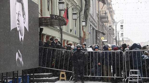 С самого утра к дверям МХТ имени Чехова пришло множество людей, которые захотели проститься с великим актером и режиссером Олегом Табаковым.