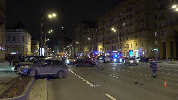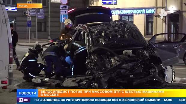 В Москве разбираются в обстоятельствах смертельной массовой аварии на Садовом кольце. Иномарка на бешеной скорости снесла велосипедиста, а затем врезалась в поток машин.