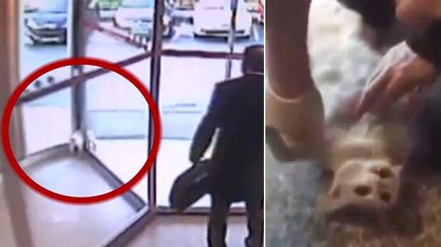 В Сети появилось видео спасения кошки. На кадрах видно, как животное развлекалось и прыгало, но в итоге оказалось зажато крутящимися дверями.