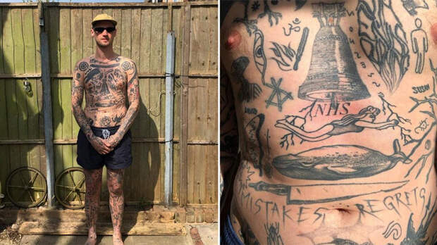 Житель Лондона, сделавший во время самоизоляции из-за пандемии коронавируса более 40 новых татуировок, пожаловался на отсутствие свободного места на теле. Крис Вудхед наносил новые рисунки на кожу каждый день, сообщили в издании Daily Star.