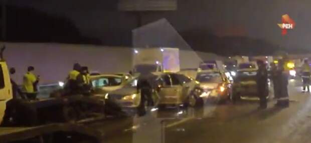 В распоряжении РЕН ТВ появилось видео с места ДТП на МКАД, где пострадал один человек.