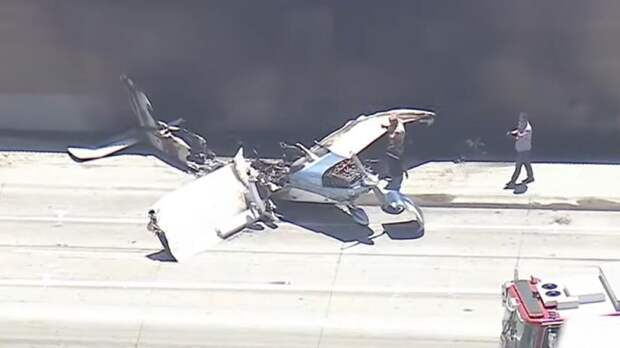 Самолёт приземлился прямо на оживленную трассу в Калифорнии. Водителям машин пришлось буквально уворачиваться, но воздушное судно село прямо на одну из машин.