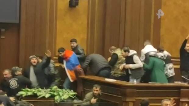 В том числе разгромили кабинет премьера и зал заседаний.В этот момент у входа в задние началась стычка между митингующими и охраной спикера парламента, он сам тоже получил травмы. После разгрома правительства недовольные направилась к резиденции Пашиняна.