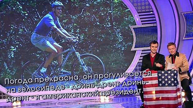 Эксперты альянса рассмотрели выступление команды "Парапапарам" из Москвы на фестивале "Голосящий КиВиН".В частности, авторы исследования считают, что программа политизирована, так как команда на конкурсе сравнила две фотографии. На одной из них экс-президент США Барак Обама едет на велосипеде по парку и фотоснимок из Сети, на котором изображен президент России Владимир Путин верхом на медведе.