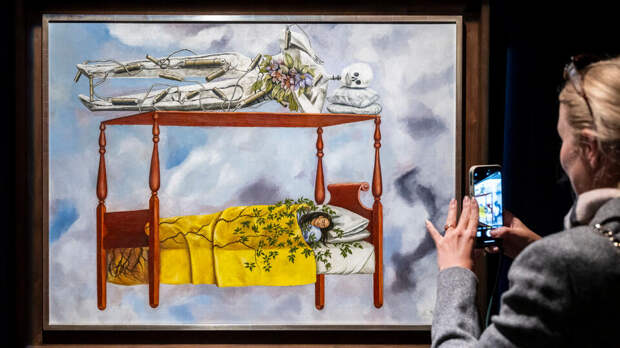 Изначально картина, написанная в 1940 году, была оценена специалистами аукциона в диапазоне от 40 до 60 миллионов долларов.На картине художница изображает спящего человека в кровати, который словно парит среди облаков на небе. Над ним находится скелет.