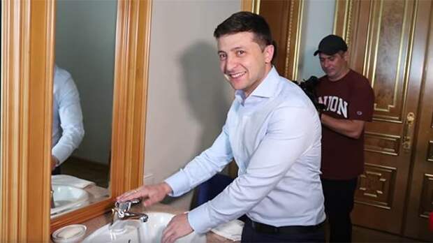 Им оказались спрятанные там парикмахерское кресло и умывальник — Зеленский отметил, что не намерен ими пользоваться, так как все это можно сделать дома.