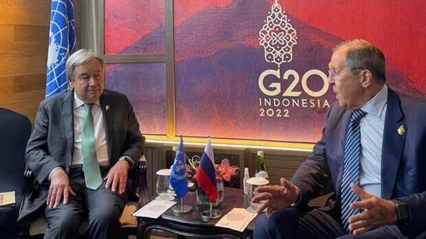 Официальный представитель МИД РФ Мария Захарова сообщила, что министр иностранных дел России Сергей Лавров встретился с генеральным секретарем ООН Антониу Гутерришем на полях саммита G20.