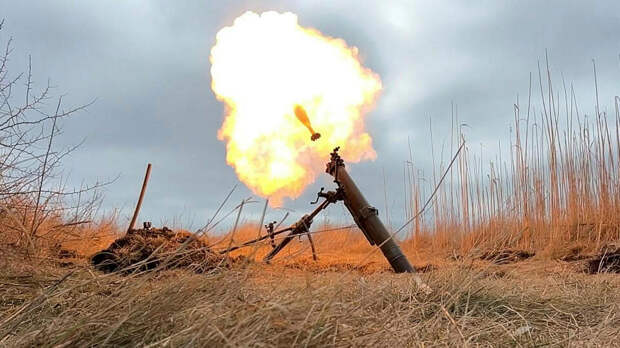 В это время на позициях бойцы уже готовят к стрельбе миномет.