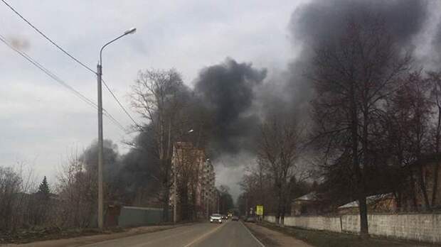 Очевидцы публикуют в соцсетях видео с места пожара на складе с древесиной в подмосковном Чехове.