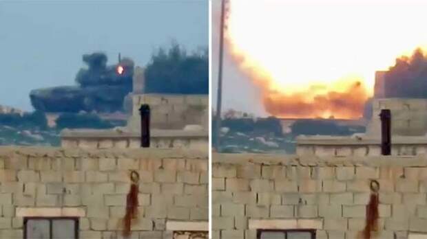 Однако, несмотря на мощный удар и взрыв, танк остался абсолютно невредимым. Все происходящее очевидцы засняли на видео. На кадрах видно, как оглушенный танкист вылез из танка и вместе другими бойцами сирийской армии уехал на этом же танке, который остался почти невредим.