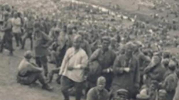 Это зловещая Миллеровская яма, или долина смерти. Вот фото из рассекреченных архивов: 80 лет назад здесь располагался немецкий пересыльный лагерь, в котором было уничтожено больше сорока тысяч не только военнопленных, но и мирных жителей. И летом и зимой люди находились под открытым небом и прицелами пулеметов, практически без еды. Потому в долине не осталось ни травинки, а местные водоемы обмелели - узникам приходилось пить воду, чтобы хоть как-то обмануть голод. Когда людей становилось слишком много, а поезда на запад не могли вместить всех, их просто расстреливали или травили ядом.